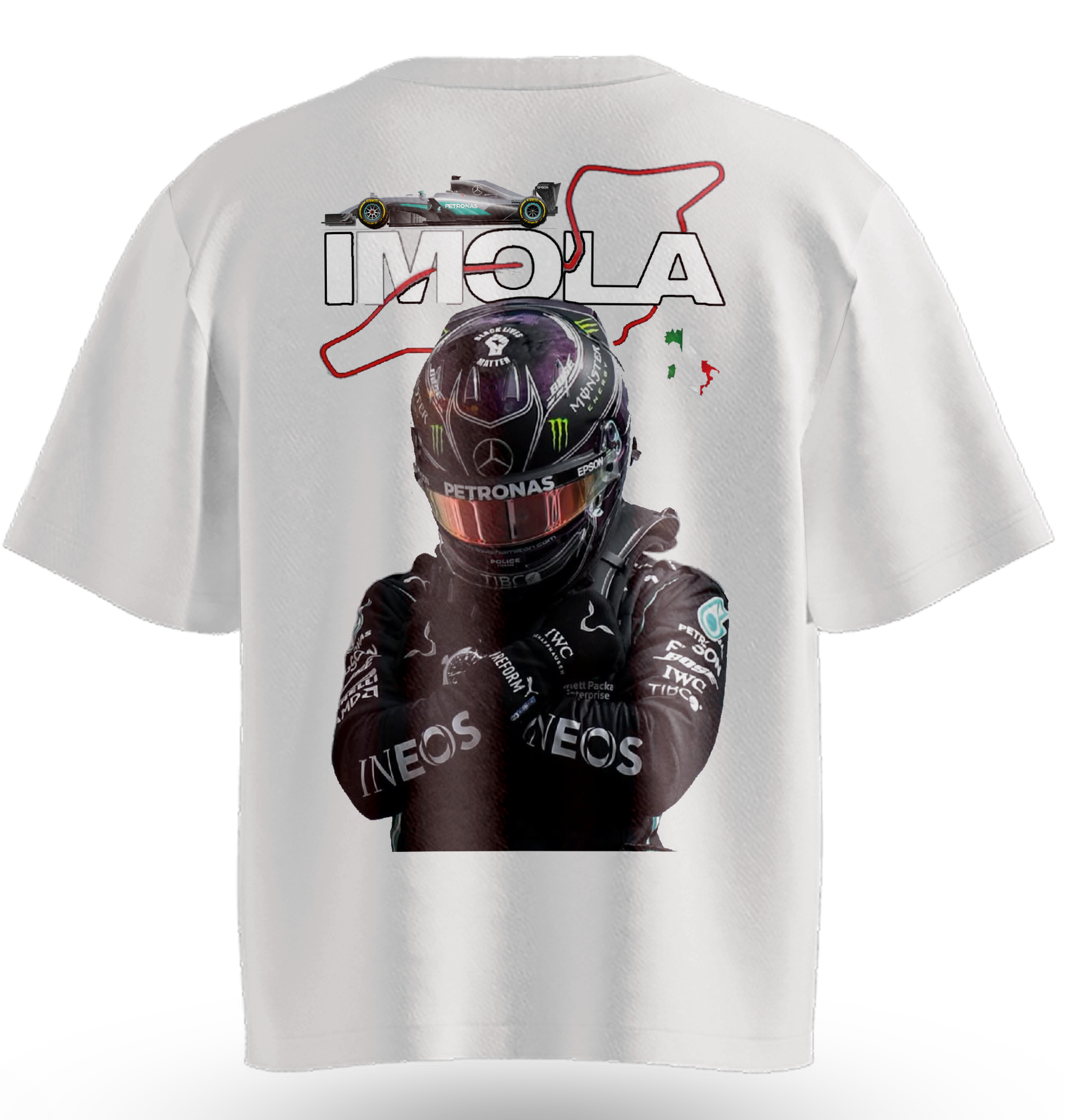 What truly sets this t-shirt apart is the dynamic Imola track design on the back. This intricate illustration captures the essence of one of the most iconic circuits in the F1 calendar. Every detail resonates with the spirit of racing, making this piece a must-have for true motorsport enthusiasts.
